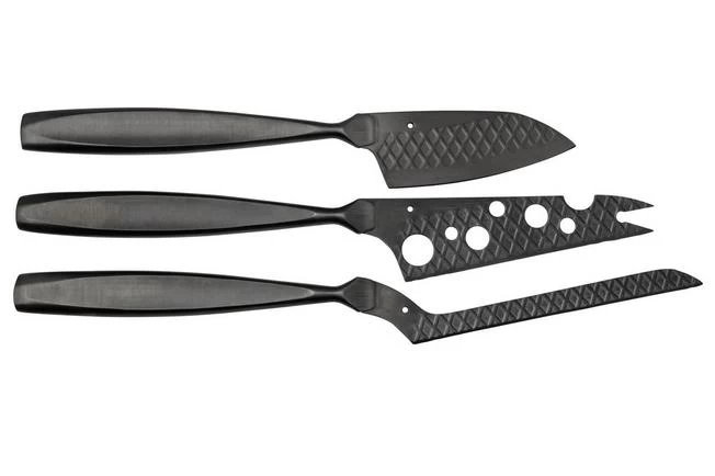 This Boska Monaco Black+ cheese knife set 307089 enables you to cut any type of cheese. The set is comprised of three different knives, perfect for cutting soft, semi-hard and hard cheeses. Cutting cheese will be a piece of cake thanks to this stunning and functional design combined with razor-sharp edges.