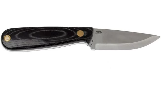 The Brisa Necker 70 is a convenient necker in traditional Scandinavian style. Like all Enzo knives it oozes Finnish tradition. The Sandvik 12c27-steel blade is full-tang, which means the steel runs through the entire handle. The shiny finished micarta handles give the knife a pleasant grip. The knife comes with a leather belt sheath. Like many Scandinavian sheaths, the knife can go in quite deep in order to prevent losing it.
