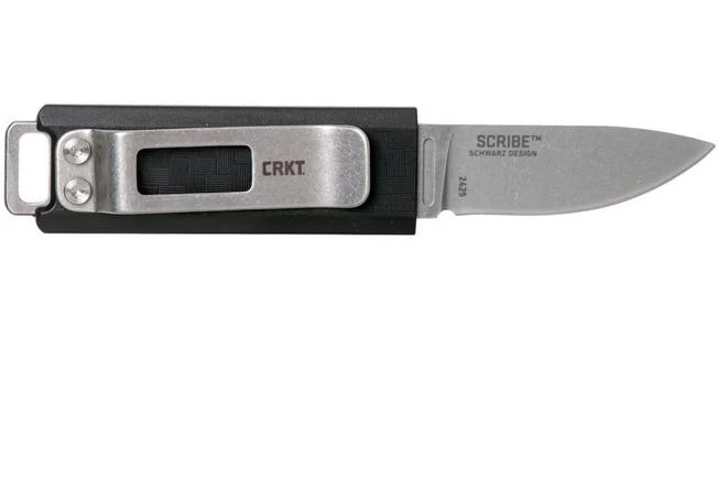 The CRKT Scribe 2425 is a light-weight fixed knife. It fits inside your pocket with the pocket clip. Unusual for a fixed knife, but very practical. You can also use paracord (not included) to hang it around your neck or from your bunch of keys.