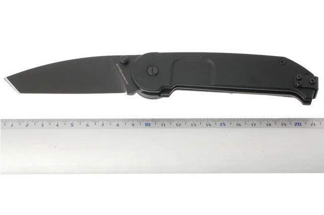 ‘Full size’ folding knives, suitable for professional use by the military and law enforcement. Classical handle provided with bridge-clip. ‘Tanto’ pointed blade. Blade length: 8.5 cm.