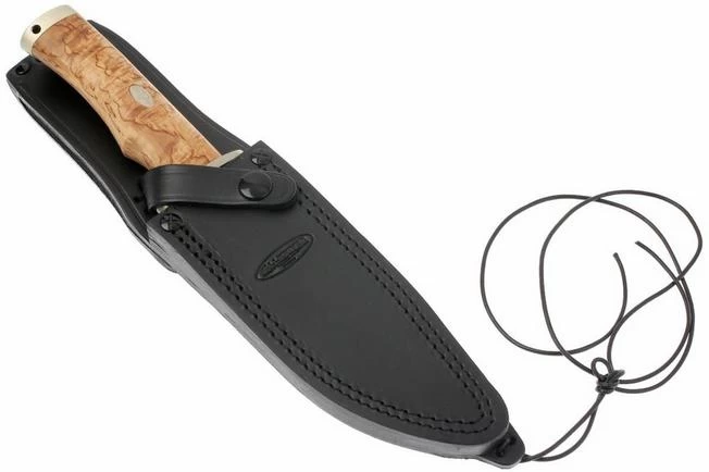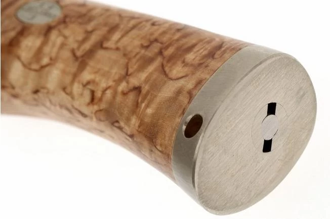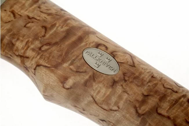 Fixed blade knife with attractive curly birch handle with nickel silver finishings. The blade is made from laminated CoS. This knife is made to an exquisite standard with great attention to detail, as can be expected from Fällkniven.