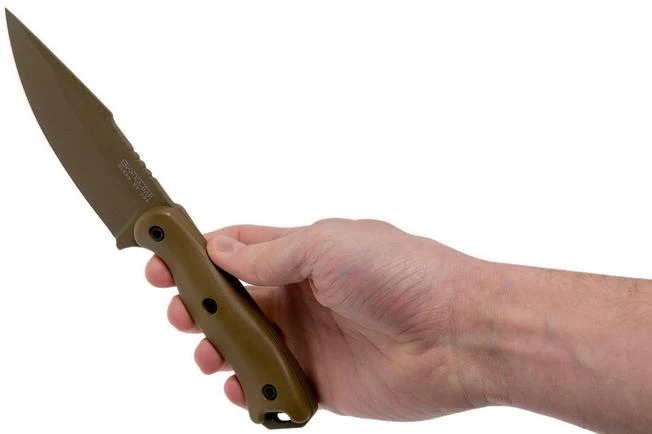The KA-BAR Becker Bk18 Harpoon is a solid fixed knife, designed for survival and bushcraft purposes. Designer Ethan Becker designed the Bk18 as a good-looking tool. The harpoon tip with swedge on the back looks really cool. Its sand-brown colour accentuates this even more.