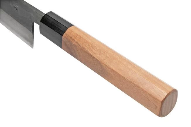 The Sakai Takayuki Blue 2 Kurouchi 01175 wa-gyuto is a remarkable Japanese kitchen knife. In Japanese Gyuto means ‘beef swords’. Sounds gruesome, but it simply means that this knife was originally made to prepare meat. Today, the gyuto knife is considered an all-round chef’s knife for every cutting task in the kitchen.