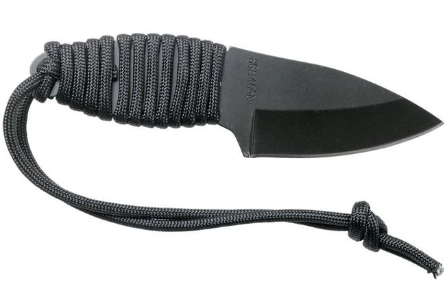 The Schrade Neck Knife SCH406N is a compact and light-weight neck knife, for a very good price. You wear it in the neck sheath around your neck with the neck cord. That way, you always have it close. Use it for small jobs like opening boxes.