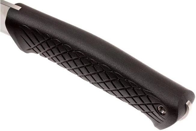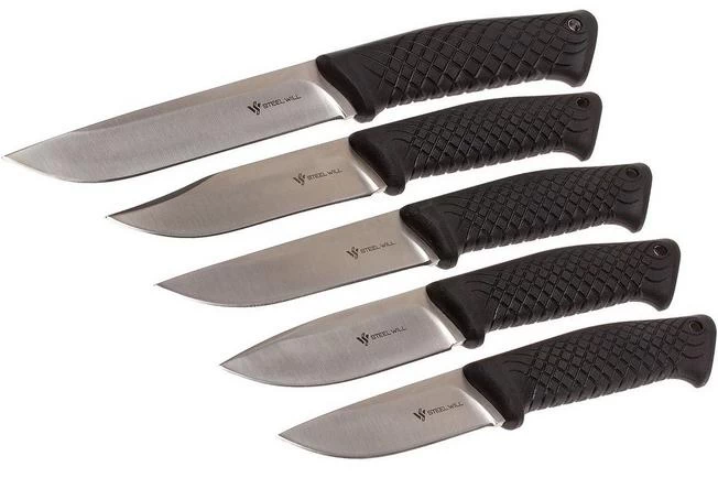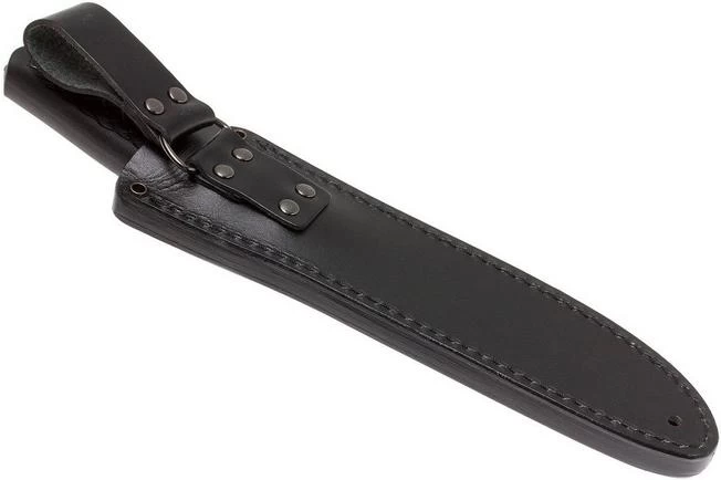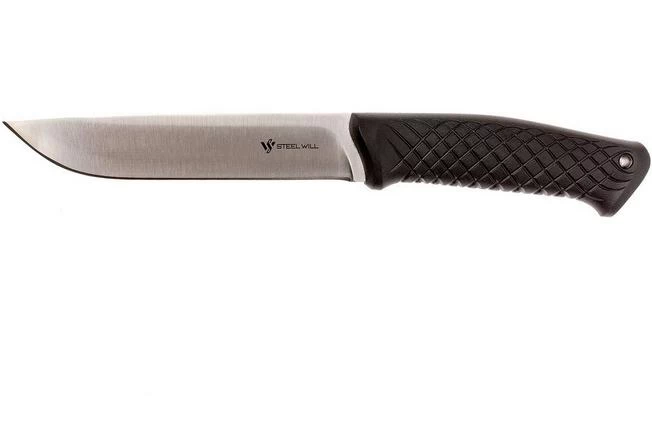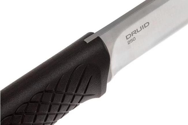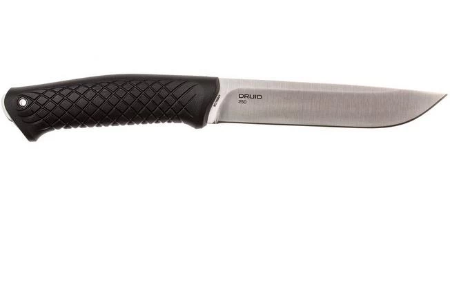 The Steel Will Druid 250 is an all-round fixed camping knife. The blade is made of 9Cr18MoV steel. This type of steel looks a lot like 440C and AUS10. The steel runs through the entire handle for added strength. A small piece of this steel comes out at the back of the handle which is suitable to be used as a hammer. By the slight forward curve the knife is also suitable for lighter work. The handle of thermoplastic elastomer comes with grooves for extra grip. The Druid 250 comes with a leather belt sheath.