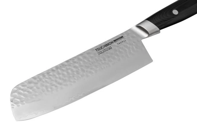 The Yaxell Tsuchimon nakiri is a traditional Japanese vegetable knife with a modern twist. The nakiri can be found in almost every Japanese kitchen. The high and square blade is great for quickly cutting vegetables, fruit and herbs. The high blade allows you to safely guide the blade along your knuckles while chopping. Without a doubt, this is the go-to knife for finely chopping carrots, cucumber, cabbage and any other types of vegetables.