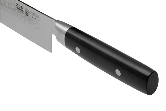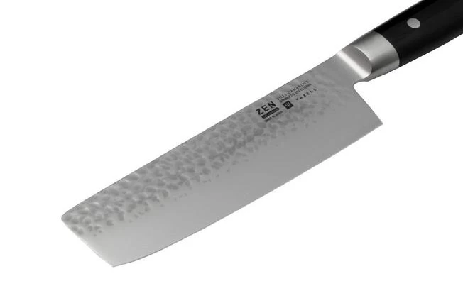 The Yaxell Zen nakiri is a stylish Japanese vegetable knife. The nakiri can be found in almost every Japanese kitchen. The high and square blade is great for quickly cutting vegetables, fruit and herbs. The high blade allows you to safely guide the blade along your knuckles while chopping. This is, without a doubt, the knife you use to finely cut carrots, cucumber, cabbage and any other types of vegetables.